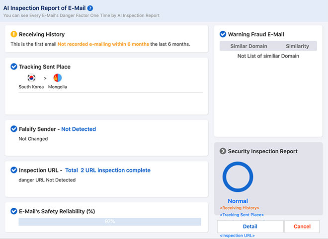 Không chỉ ngăn chặn malware thông thường, Secumail còn có thể loại bỏ các biến thể mới dựa trên kỹ thuật phân tích hành vi và gửi cảnh báo đến người dùng.